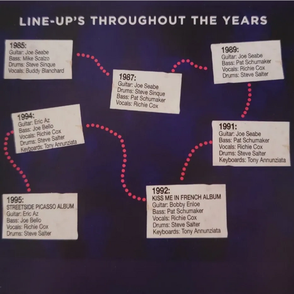 In 2022 Mouse, Rich and Pat started to talk about getting the crew back together and start to play some shows again. So this sparked the 30 year reunion tour! We recruited Kieth Chasin on Keyboards, brought back Eric Az and got Richie Salamone on drums. Rehearsals and shows kicked off and a buzz was starting again. In June of 2023 we recruited Guitarist and vocalist Shady (Scott) Brady into the mix to add 3 part harmony vocals back into the mix and to free Rich up to front the band. More shows are coming so keep an eye on the tour page of this website as well as Facebook, we will push on as many social media platforms as we can. We have continued doing shows through 2023 opening for the likes of Heavens Edge, Lynch mob at the sold out Landis Theater and Nazareth at the Queen and Foghat and Starship on the Spyglass winery main stage along the way. Lots more in store for 2025/2026 with an EP in the works for the beginning of the year.